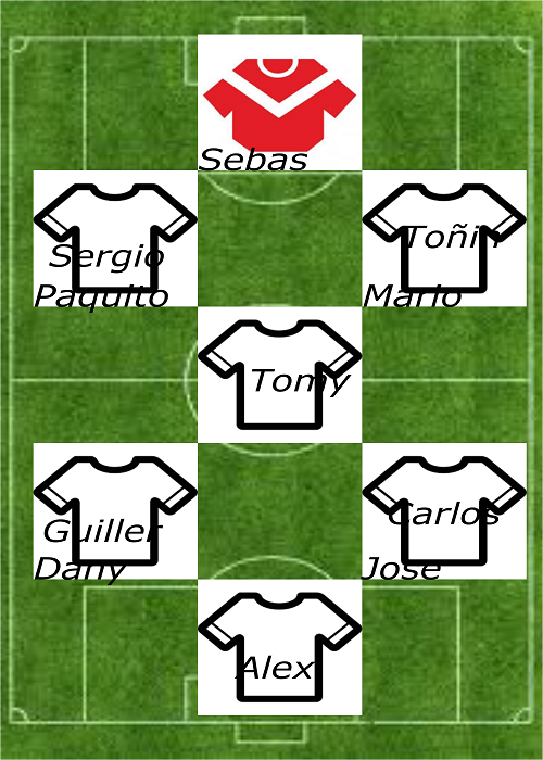 Partido muy competido por los dos equipo con muchos goles. El equipo jugo a un buen nivel, jugando a primer toque y con buena posesión del balon, los goles fueron de Alex uno y tres de Guiller.Jugadores convocados fueron Tomy, Mario, Toñin, Jose, Carlos, Guiller y Alex.